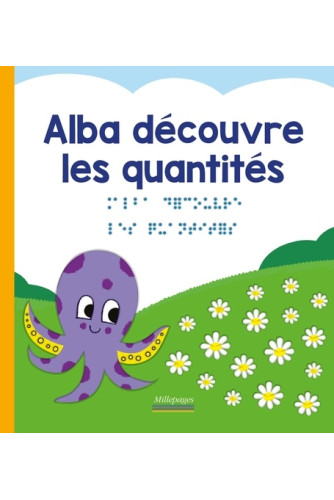 Alba est une pieuvre un peu spéciale : elle ne possède que cinq tentacules au lieu de huit ! Cette particularité ne l'empêche pas de s'amuser, d'apprendre et de faire des bêtises, comme tous les amis de son âge. A travers ses aventures, la curieuse petite Alba découvre le monde qui l'entoure et partage ses connaissances avec le lecteur. En lettres et en braille, cet album à toucher est destiné à toutes les petites têtes et mains curieuses.